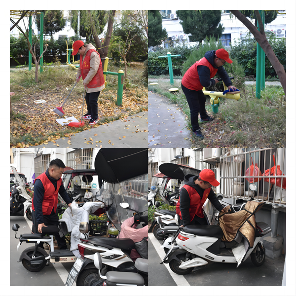 活動中,志愿者們身穿“紅馬甲”,個個精神飽滿,干勁十足,充分發(fā)揚(yáng)不怕臟不怕累的精神,手拿掃帚、抹布等清潔工具。分工明確,相互合作,對水利局小區(qū)道路及花園內(nèi)紙屑、落葉、健身器材等進(jìn)行清理打掃,幫助規(guī)范小區(qū)內(nèi)電瓶車停放問題。經(jīng)過大家的共同努力,小區(qū)環(huán)境得到極大改善。